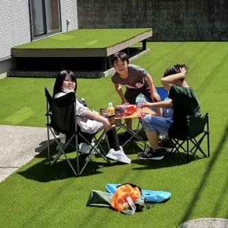 「お庭でサッカーがしたい!」「友達をたくさん呼んで遊びたい!」という子どもたちの願いを叶えるために、思い切って人工芝にしました。雑草だらけだったお庭がみるみる変わっていく姿を見てびっくり。施工も早く、仕上がりもとても丁寧で、富山人工芝ラボさんにお願いして本当によかったと思います!