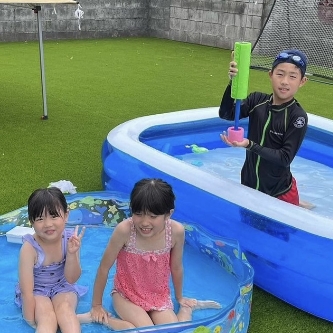 雑草が生い茂っていて困り果てていたお庭を、富山人工芝ラボさんに相談したところ、除草から施工まで、短期間で見違えるお庭に変身させてもらいました!もっと早くすればよかった…と。さっそくプール&BBQ!プールから出て裸足で走り回っても安心ですし、プールも土で汚れることなく、虫も少なくなったなぁ…と満足なことばかりです!